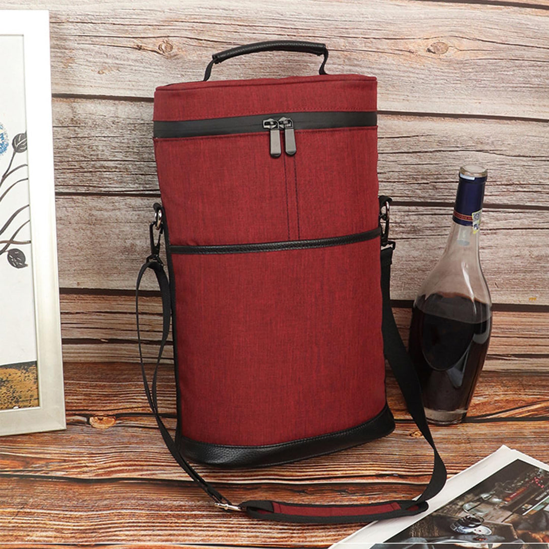 Insulated 2-Bottle Wine Cooler Tote Bag with Adjustable Strap